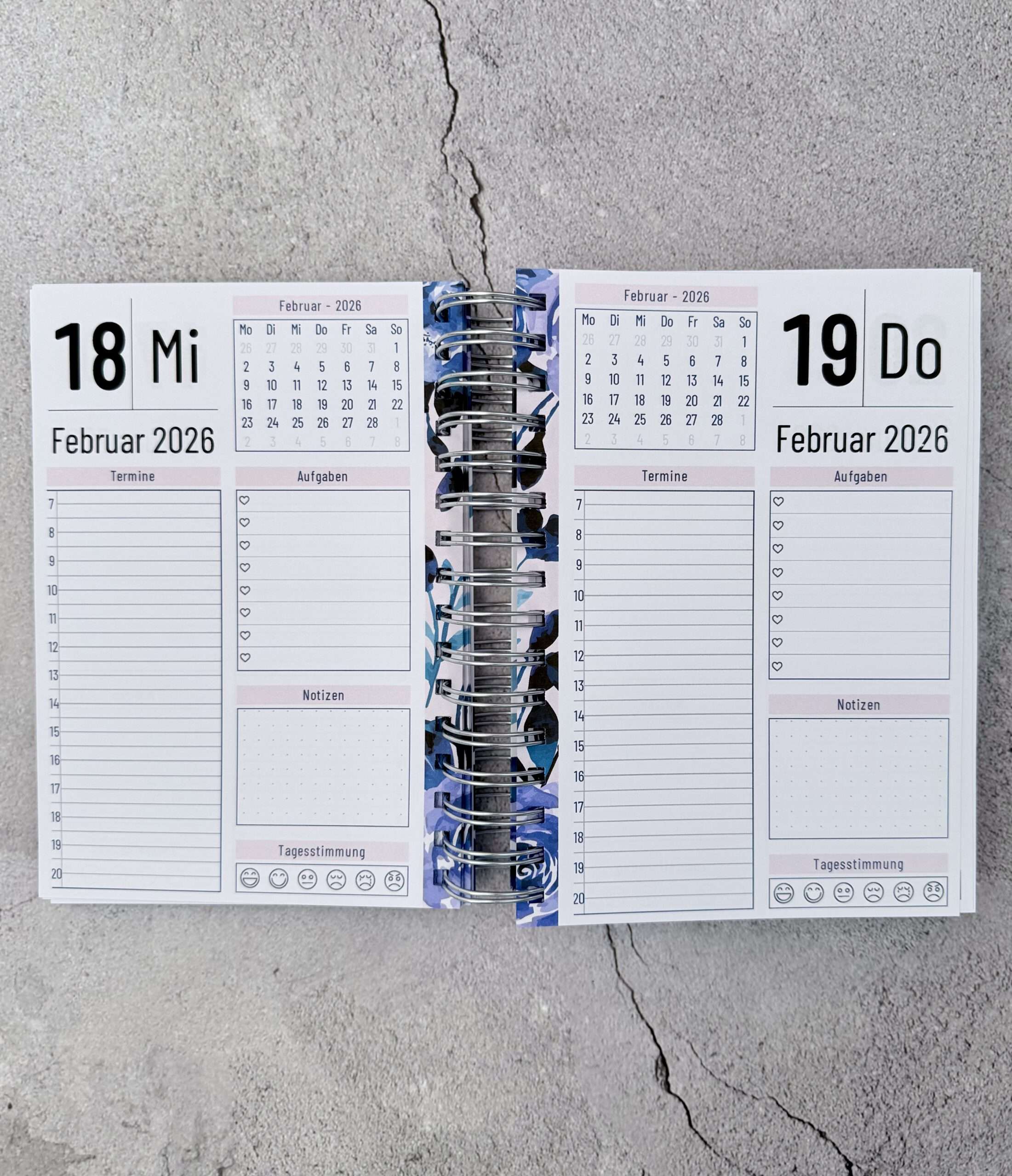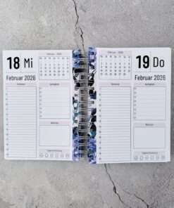 Der Kalender enthält einen doppelseitigen Jahresüberblick, für jeden Tag des Jahres eine eigene Seite und mehrere Notizseiten. Gedruckt ist der Kalender auf stabilen und hochwertigem 120g Papier.
