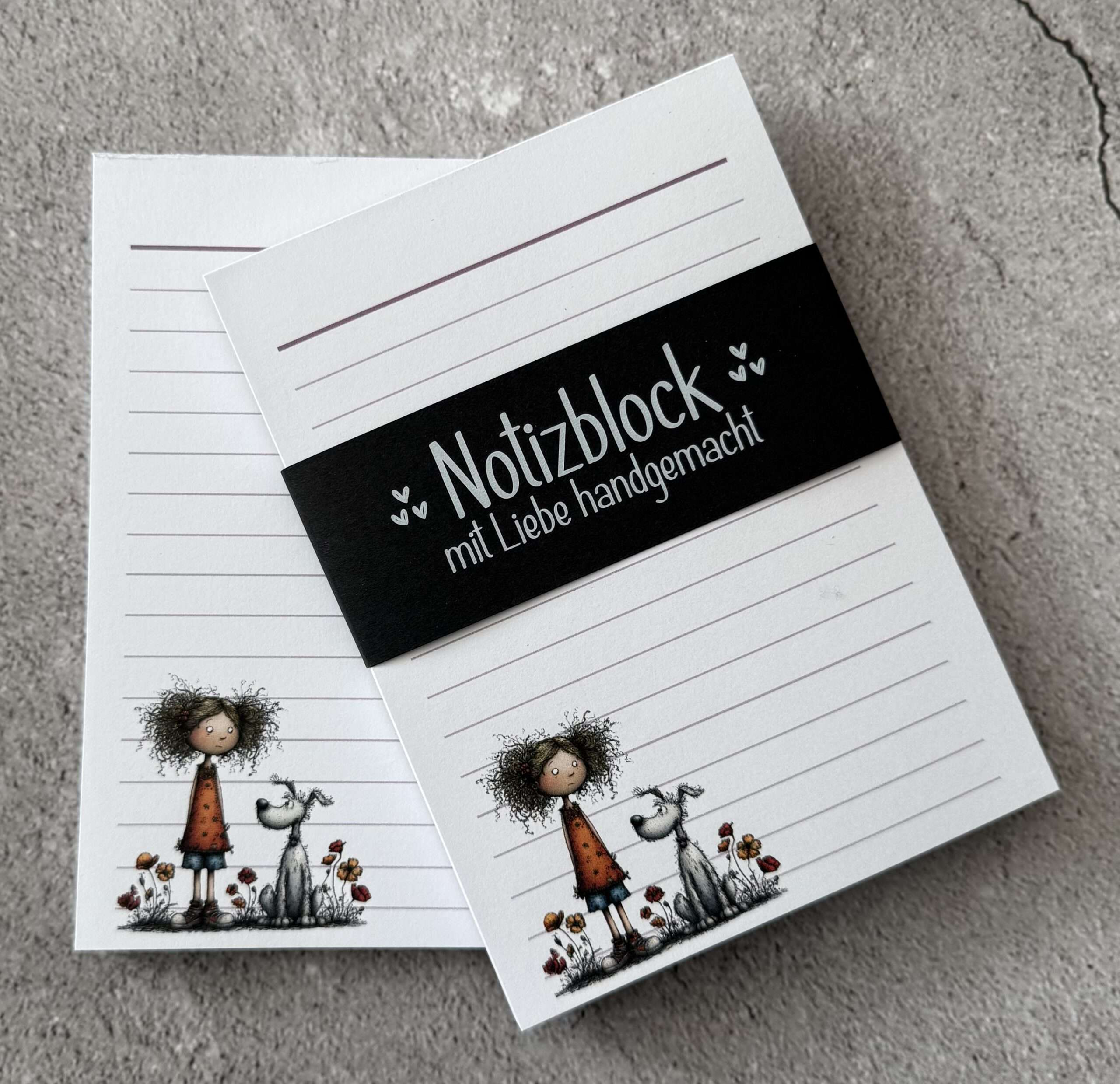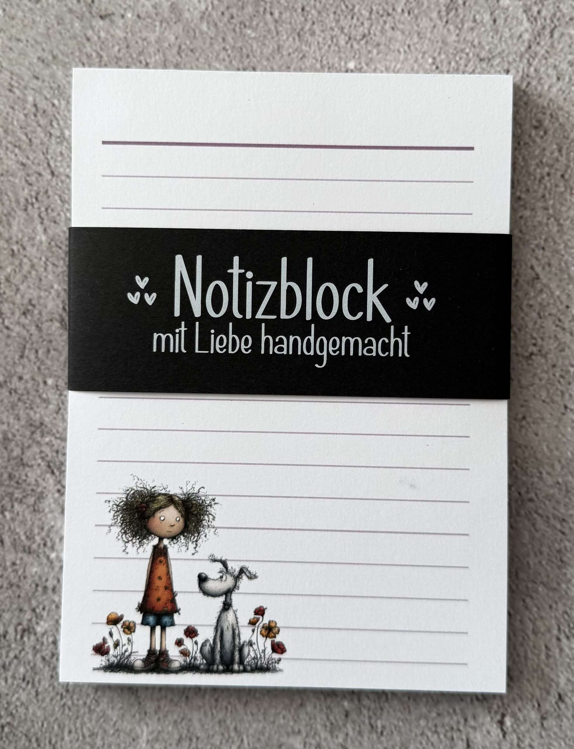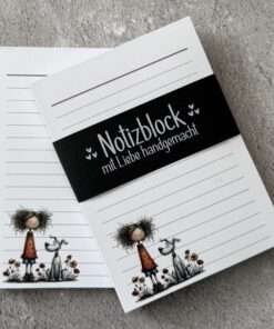Der Block besitzt ca. 48 Blätter aus hochwertigem 100g Papier, einseitig bedruckt und ist an der oberen Kante leimgebunden. Die Rückwand besteht aus 1mm starker Buchbinderpappe.