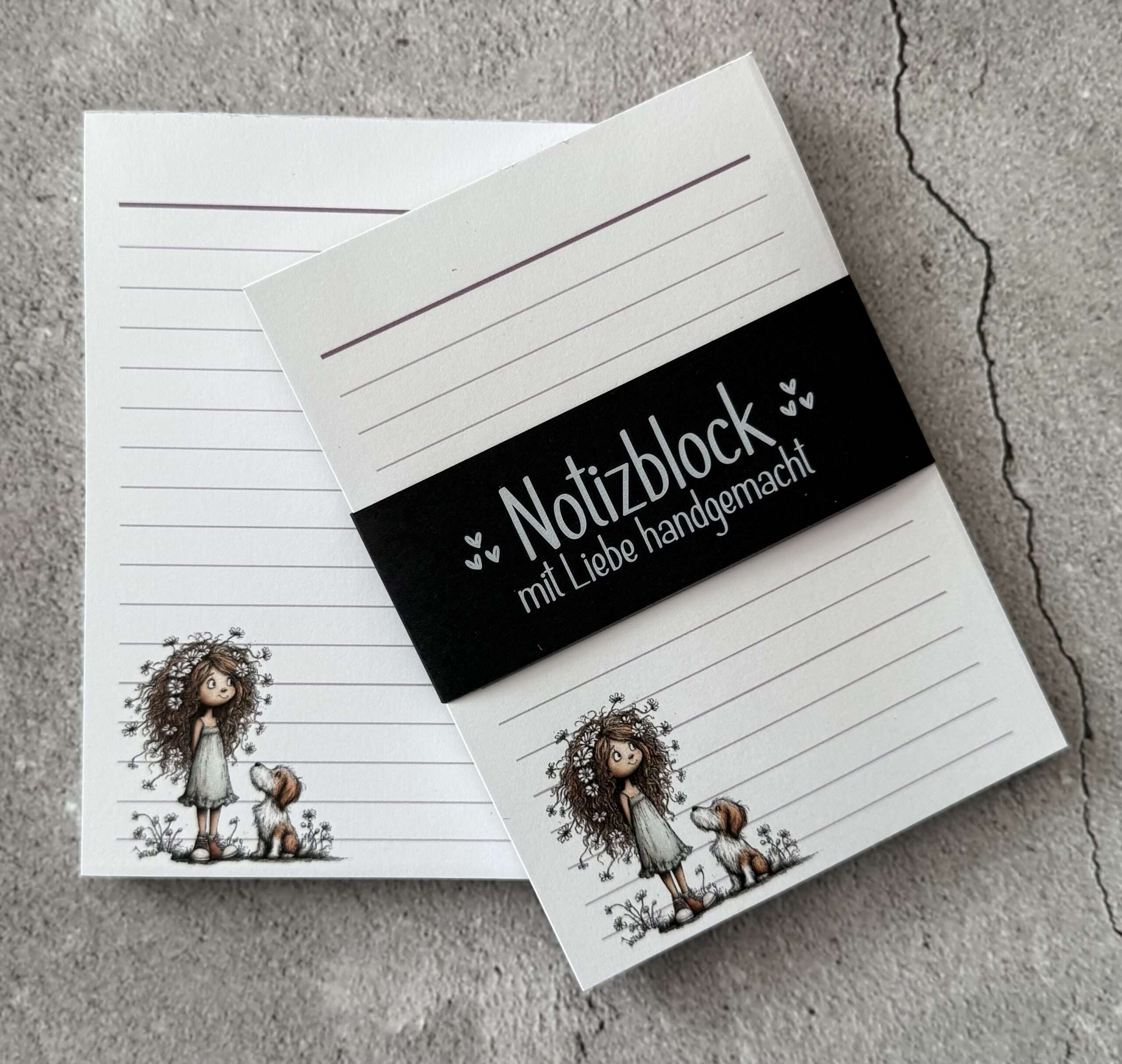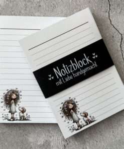 Niedlicher Notizblock im praktischen DIN-A6-Format, Seitengröße ca. 105mm x 148mm.