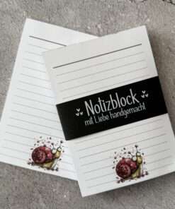 Niedlicher Notizblock im praktischen DIN-A6-Format, Seitengröße ca. 105mm x 148mm.