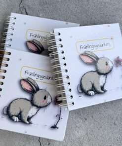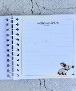 Zuckersüßes Frühlings-Notizbuch im handlichen Mitnehm-Format, Seitengröße ca. 105mm x 105mm.
